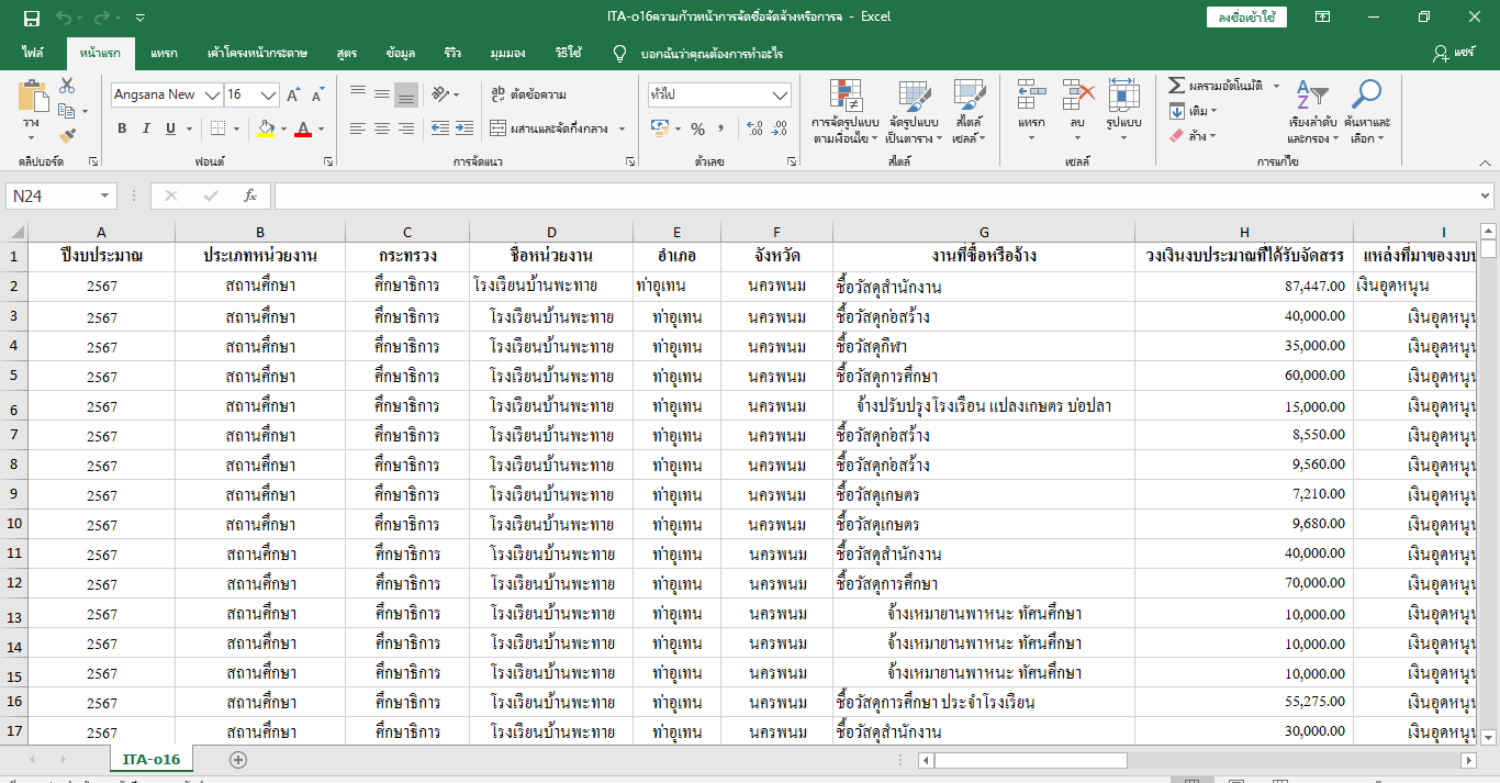O16 : ความก้าวหน้าการจัดซื้อจัดจ้างหรือการจัดหาพัสดุ