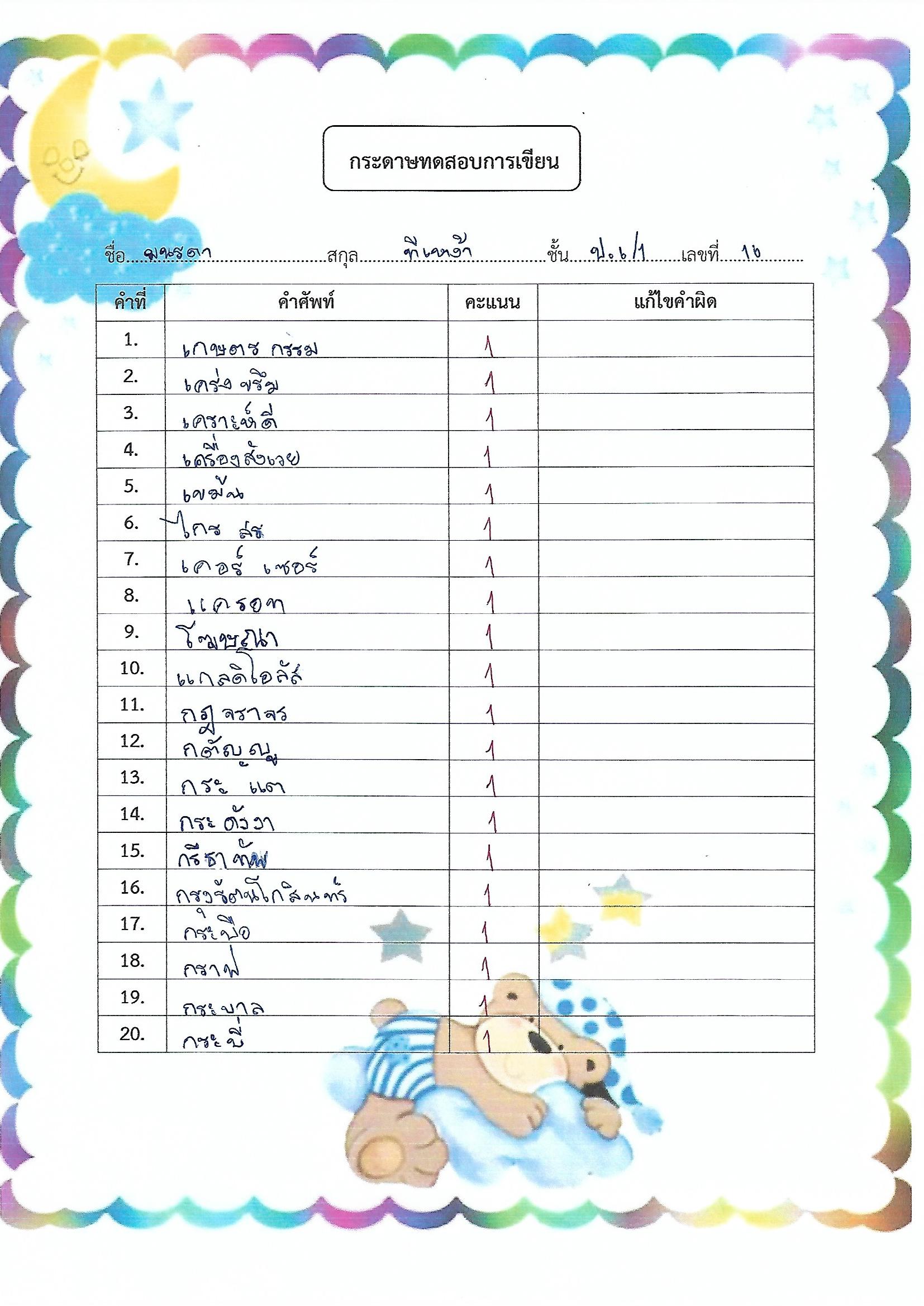 เขียนตามคำบอก (ครูณัฏฐณิชา สุวรรณโส)